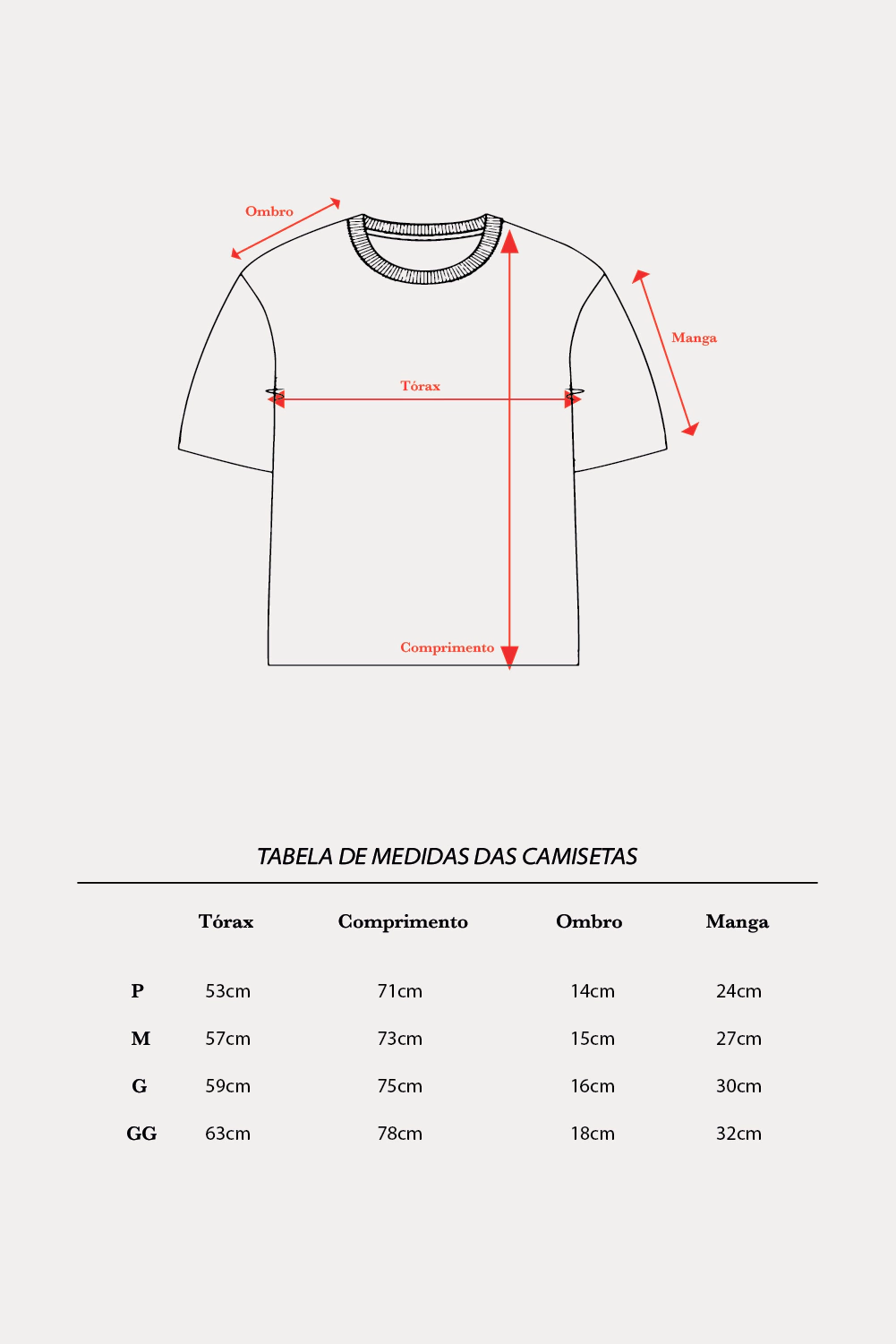 Tórax | Comprimento | Ombro | Manga: